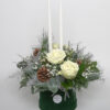 the Carolle candle arrangement features plump large headed red Roses,