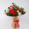 Comprising of large headed red Roses, Spray Roses, Carnations,