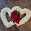 with designed with roses and seasonal foliage.